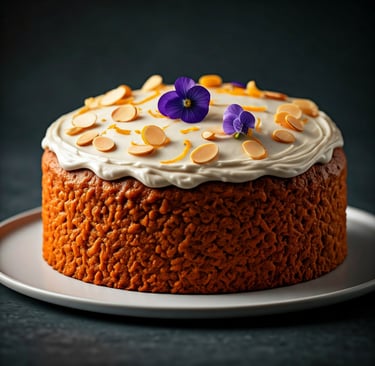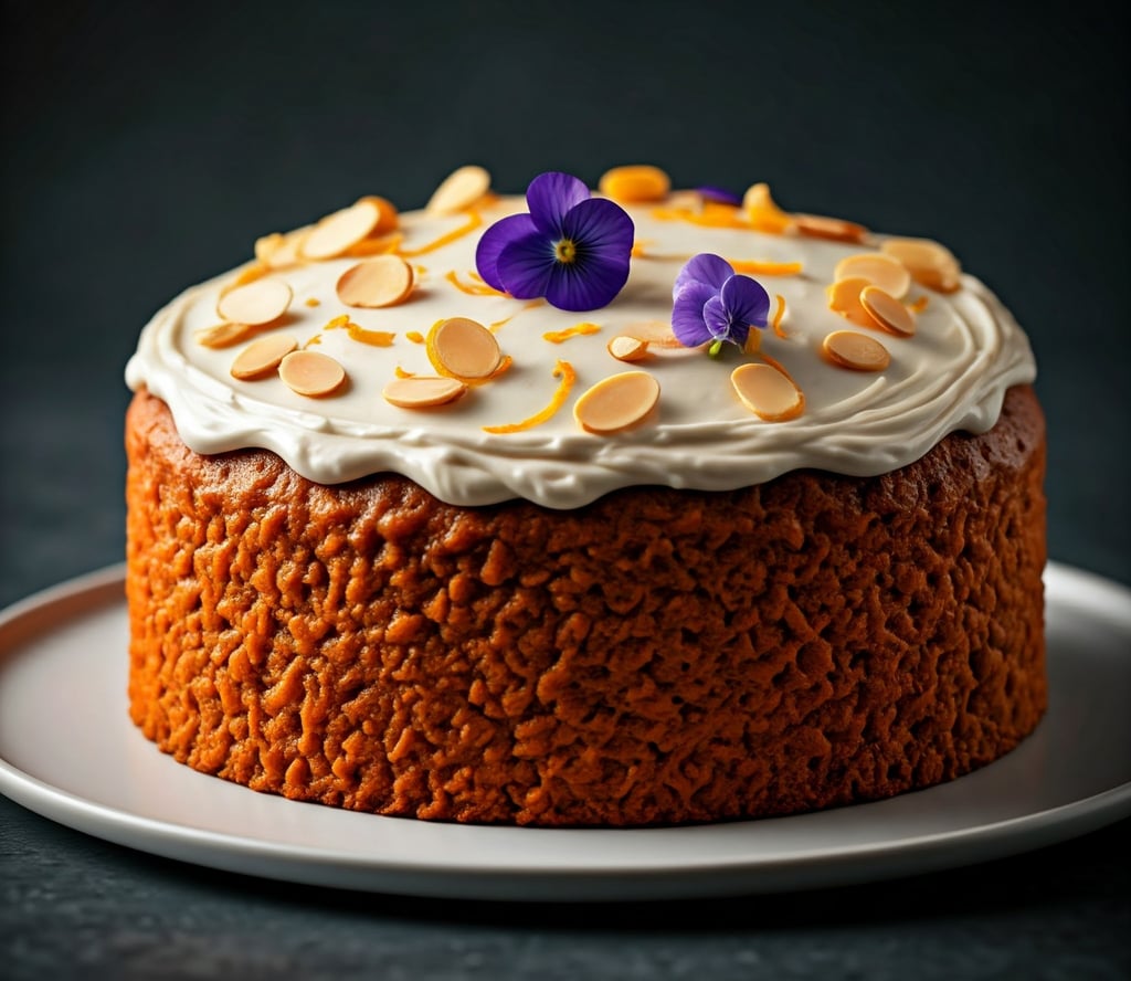 Este bolo sem ovos é leve e saboroso, com cenoura fresca e amêndoas crocantes.