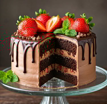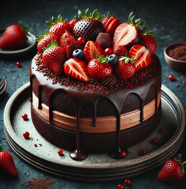 Bolo de Chocolate com Morangos