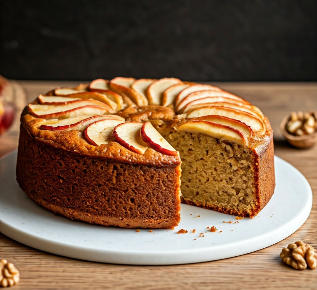 Este bolo de maçã e nozes é incrivelmente aromático e tem uma textura maravilhosa, além de ser leve e sem leite.