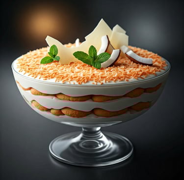 Em uma forma, faça camadas de biscoitos maisena e creme de coco.