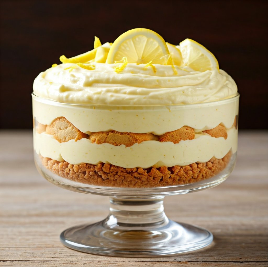 Em uma forma, faça camadas alternadas de biscoitos e creme de limão.