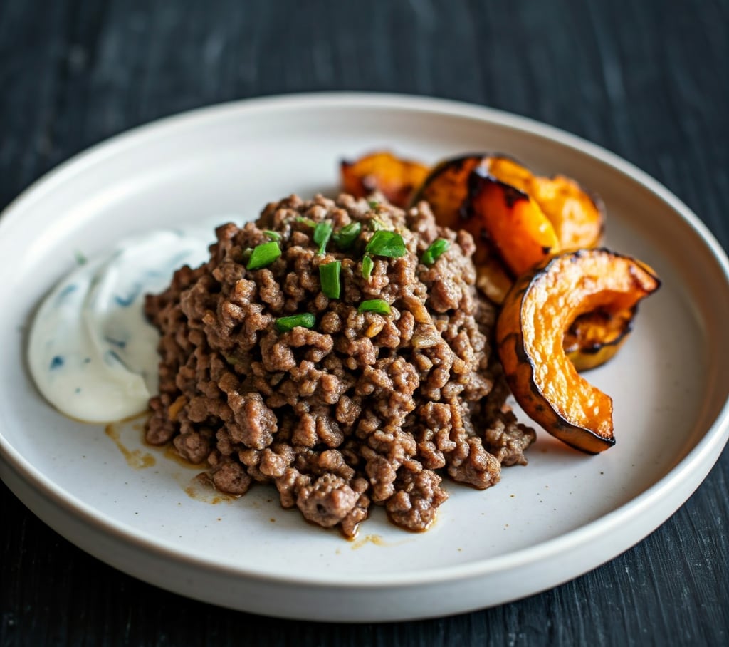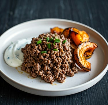 Carne Moída com Abóbora Assada e Molho de Iogurte