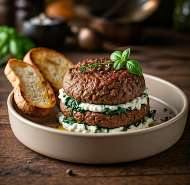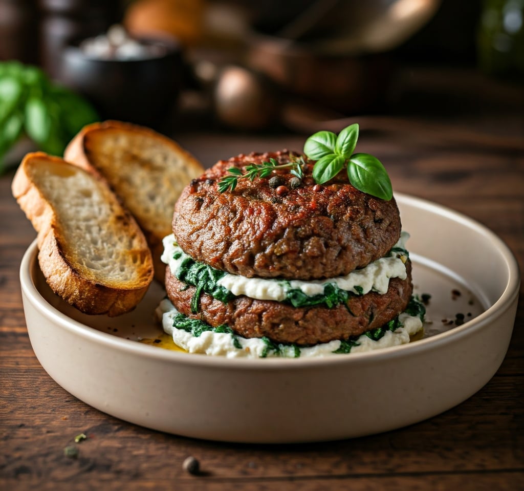 Uma refeição leve e nutritiva, com carne moída temperada, espinafre refogado e ricota cremosa, gratinada no forno.