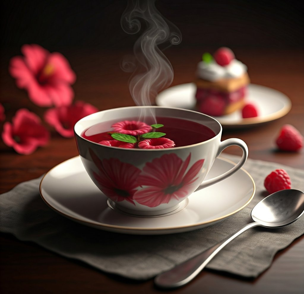 A framboesa dá um toque agridoce ao chá, enquanto o hibisco confere uma cor vibrante. Esse chá pode ser servido gelado para um toque refrescante.
