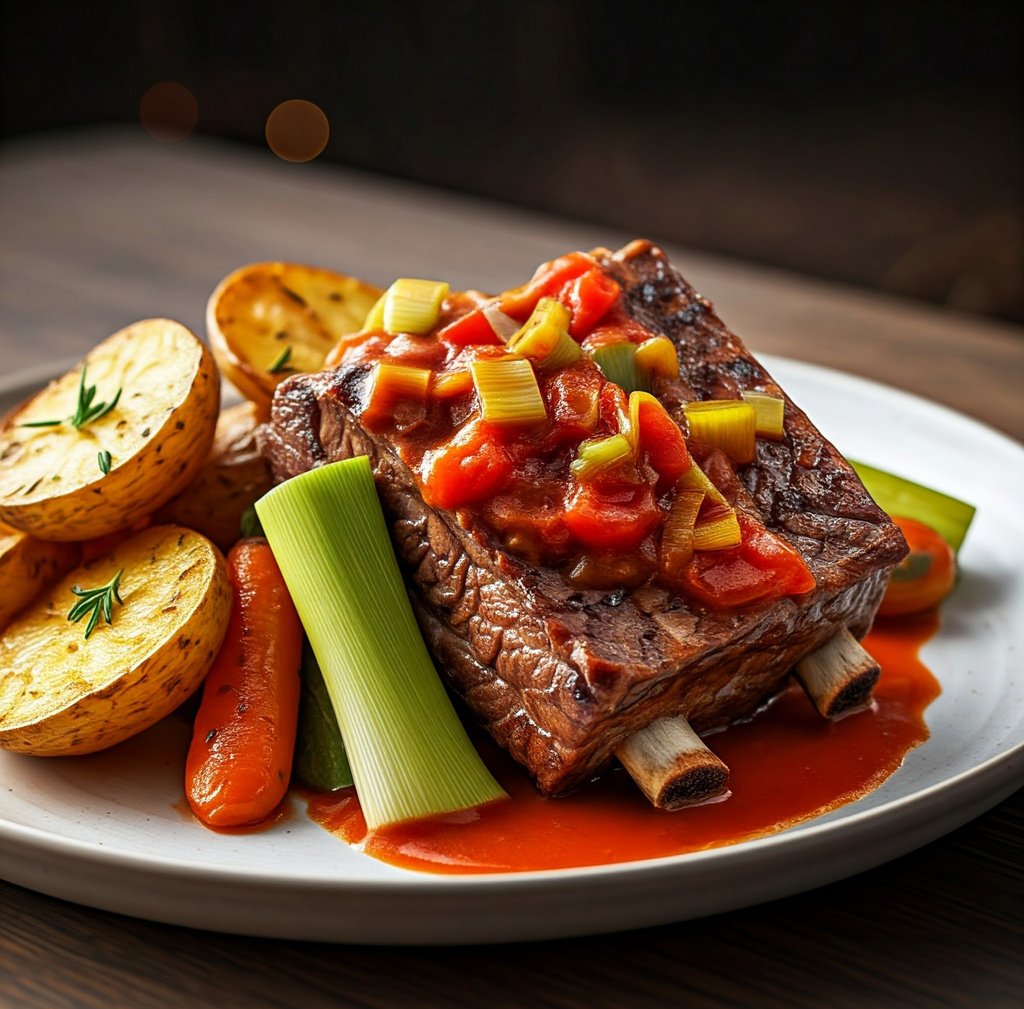 Costela Bovina com Molho de Tomate e Alho-Poró