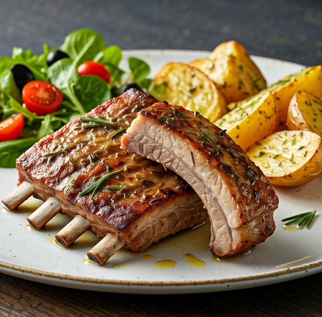 Tempere a costela com sal, pimenta, alho, azeite e ervas de Provença.