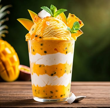 Um gelado refrescante e cremoso feito com frutas tropicais e sem laticínios.