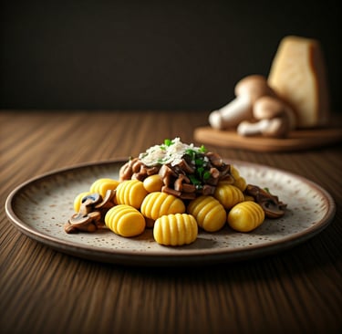 Nhoque de Mandioca com Ragu de Cogumelos