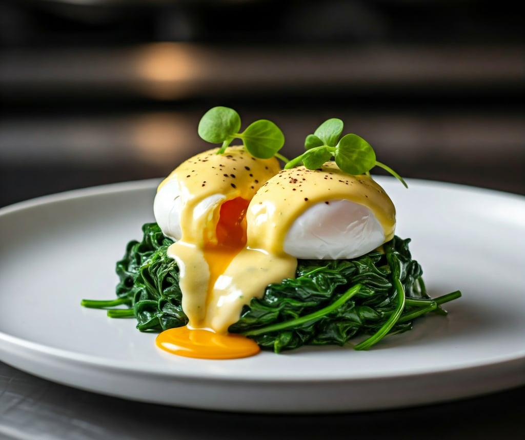 Ovos Pochê com Espinafre Refogado e Molho Holandês