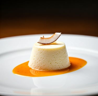 Uma versão tropical da tradicional panna cotta, com a suavidade do coco e o toque ácido do maracujá.