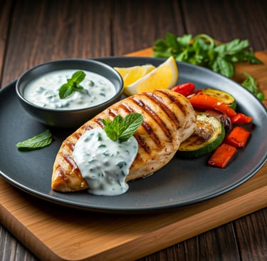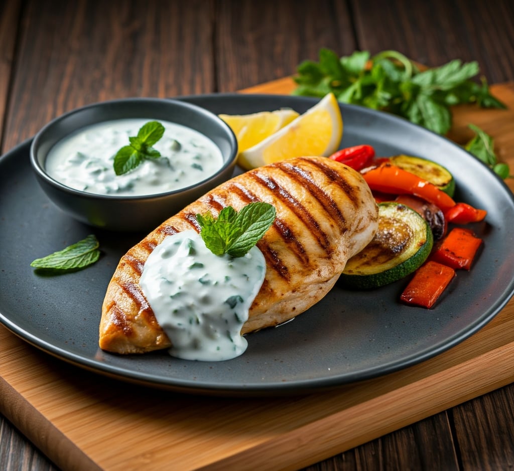 Peito de Frango Grelhado com Molho de Iogurte e Hortelã