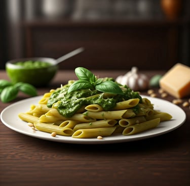 O pesto pode ser feito com outros tipos de nozes, como castanhas de caju ou amêndoas. Use sempre azeite de boa qualidade para garantir um sabor autêntico.