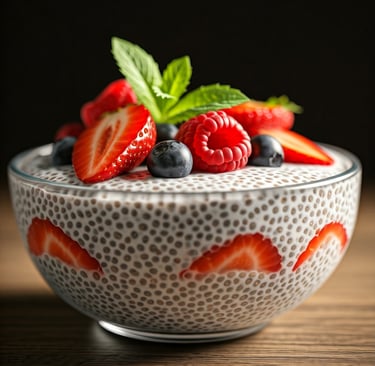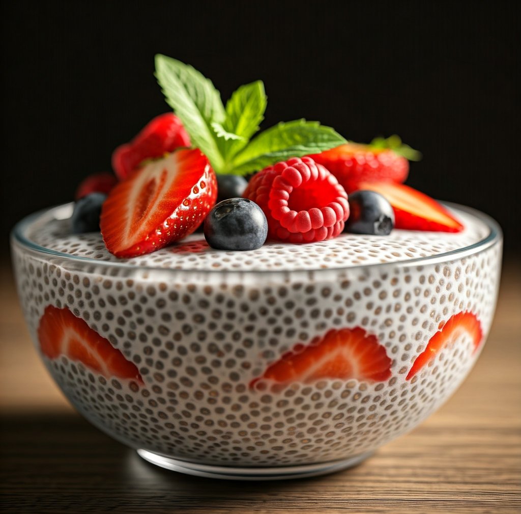 Uma sobremesa saudável e deliciosa, feita com sementes de chia, que tem uma textura semelhante à de um pudim.