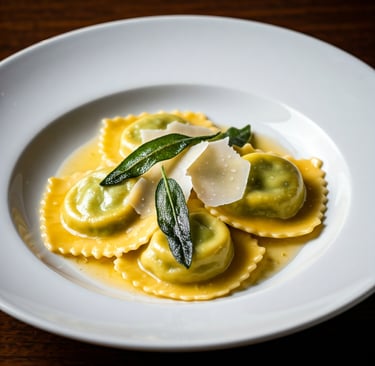 Ravioli de Ricota com Espinafre e Molho de Manteiga e Sálvia