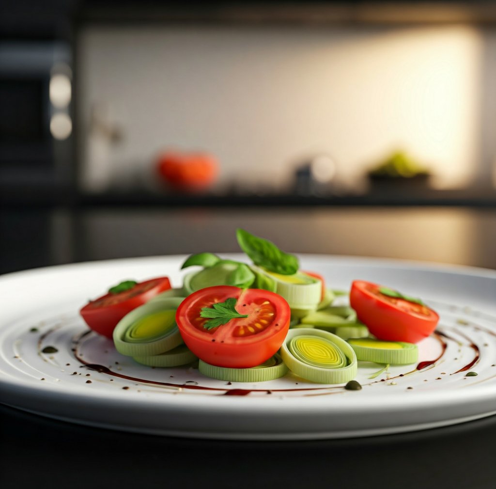 Salada de Alho-poró e Tomate com Molho de Vinagre Balsâmico