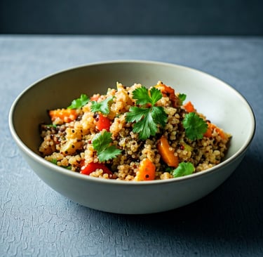Enquanto os legumes assam, cozinhe a quinoa em água com uma pitada de sal, conforme as instruções da embalagem (geralmente 15-20 minutos).
