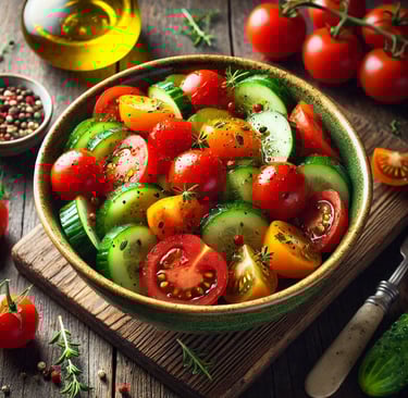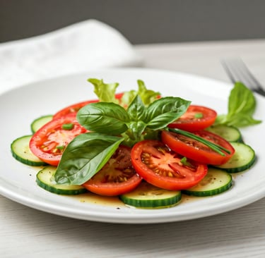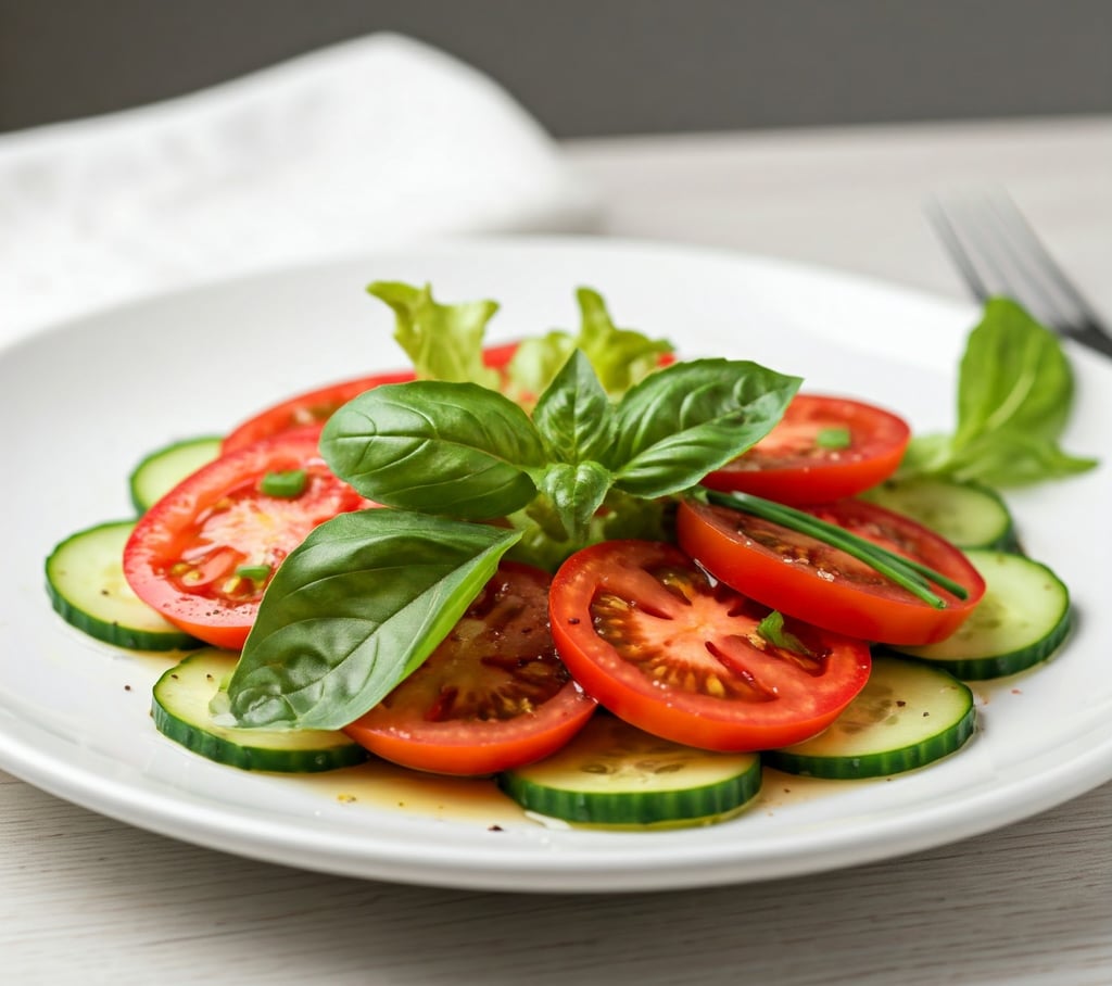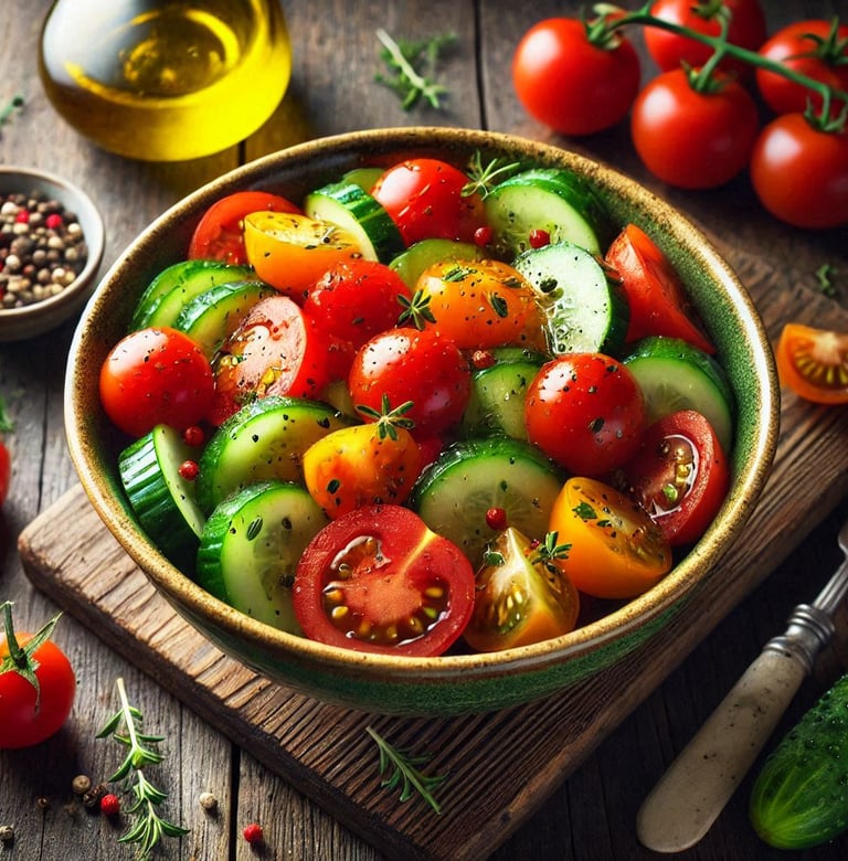 Descubra como preparar uma salada de tomate e pepino clássica e deliciosa, perfeita para os dias quentes! Esta receita fácil e rápida, com apenas alguns ingredientes frescos, é ideal para quem busca uma opção leve e nutritiva. Ideal para acompanhar suas refeições ou para um lanche refrescante nos dias quentes. A simplicidade elevada ao máximo: Salada de Tomate e Pepino com azeite extra virgem. Uma combinação clássica que nunca decepciona, perfeita para acompanhar seus pratos favoritos ou para um momento de frescor e leveza