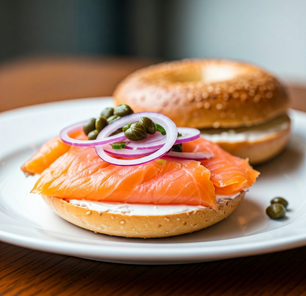 Salmão Defumado com Cream Cheese Light e Acompanhamento de Bagel Integral
