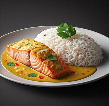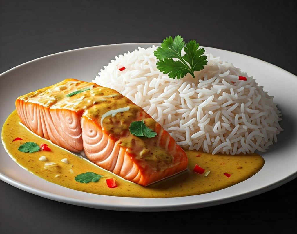 Salmão em Curry com Leite de Coco e Arroz Basmati