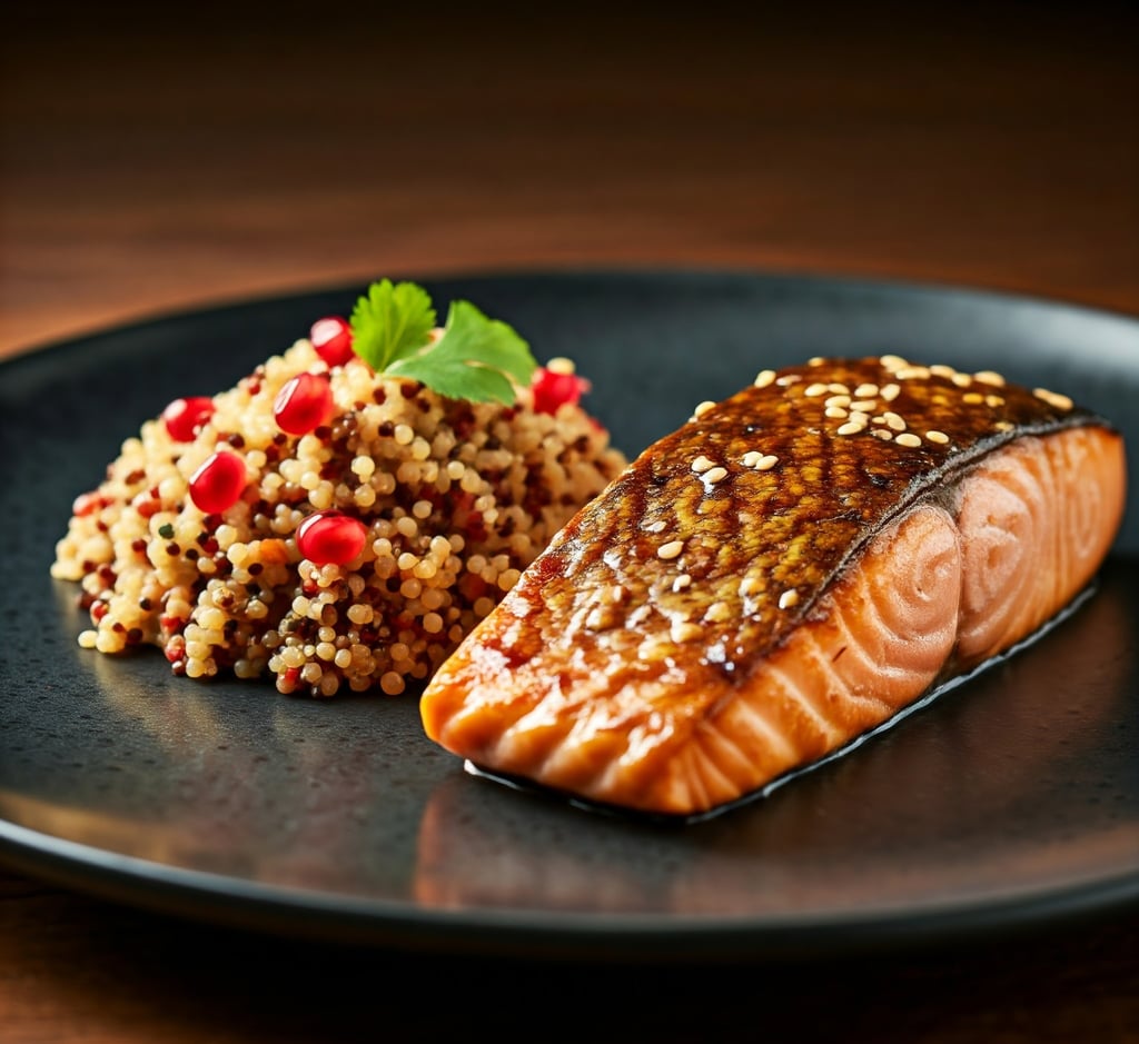 Salmão Grelhado com Miso e Acompanhamento de Quinoa