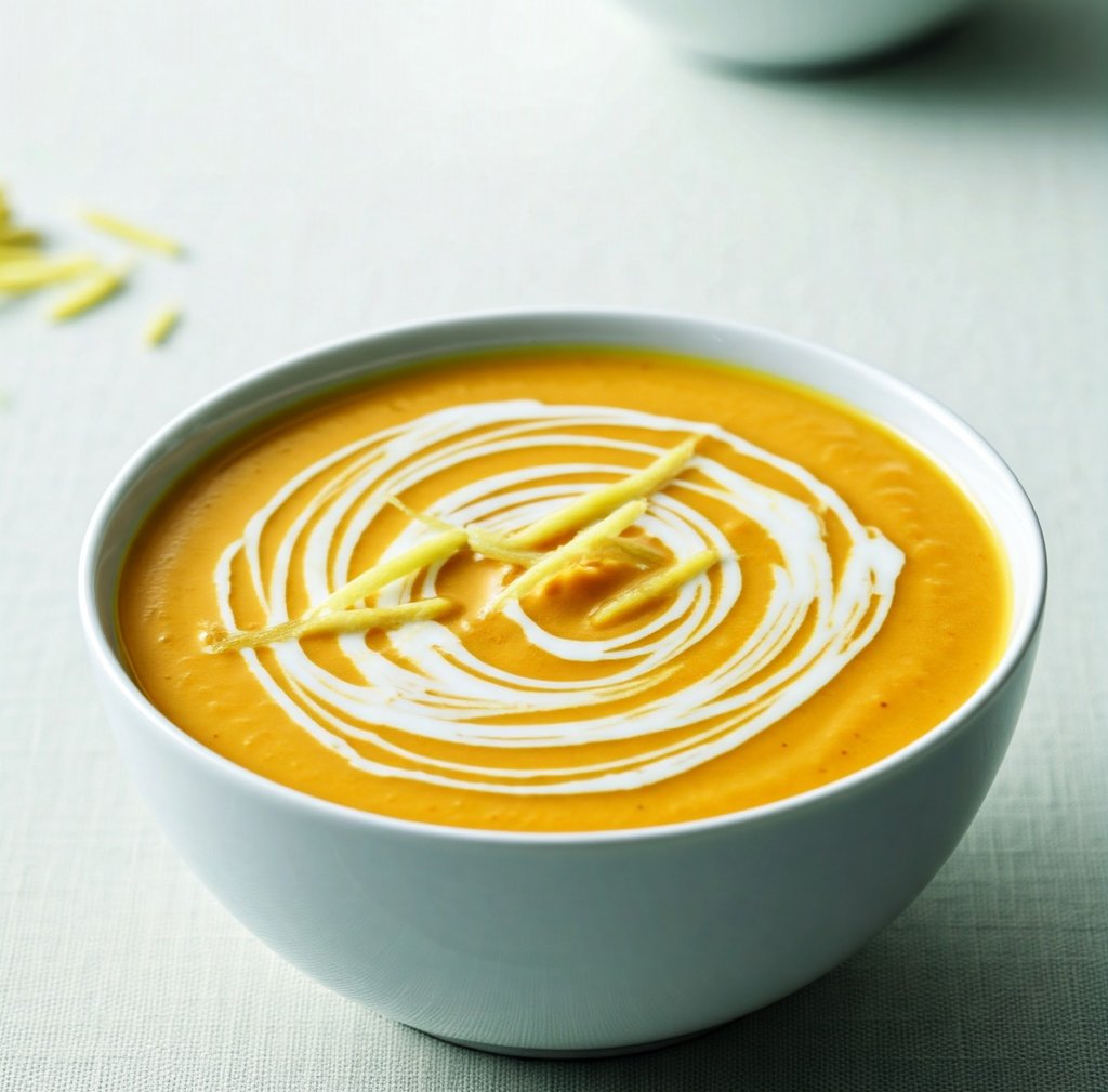 Uma sopa reconfortante, leve e cheia de sabor. O gengibre e o coco adicionam um toque aromático e refrescante.