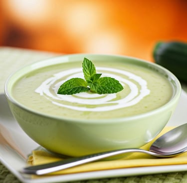 Uma sopa leve e refrescante, ideal para o verão, com uma combinação deliciosa de abobrinha e hortelã.