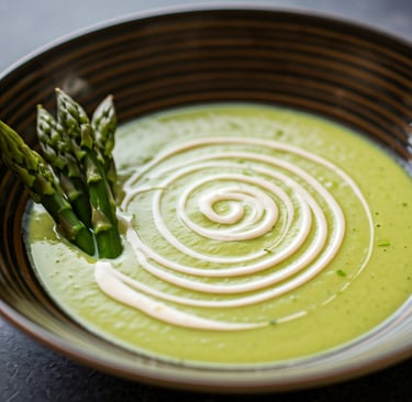 Uma sopa leve, cheia de sabor e elegância, com o frescor dos aspargos e a cremosidade das amêndoas.