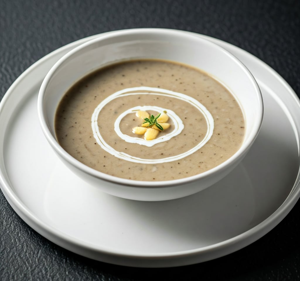 Uma sopa sofisticada, cheia de sabor umami dos cogumelos e um toque suave de alho e creme.