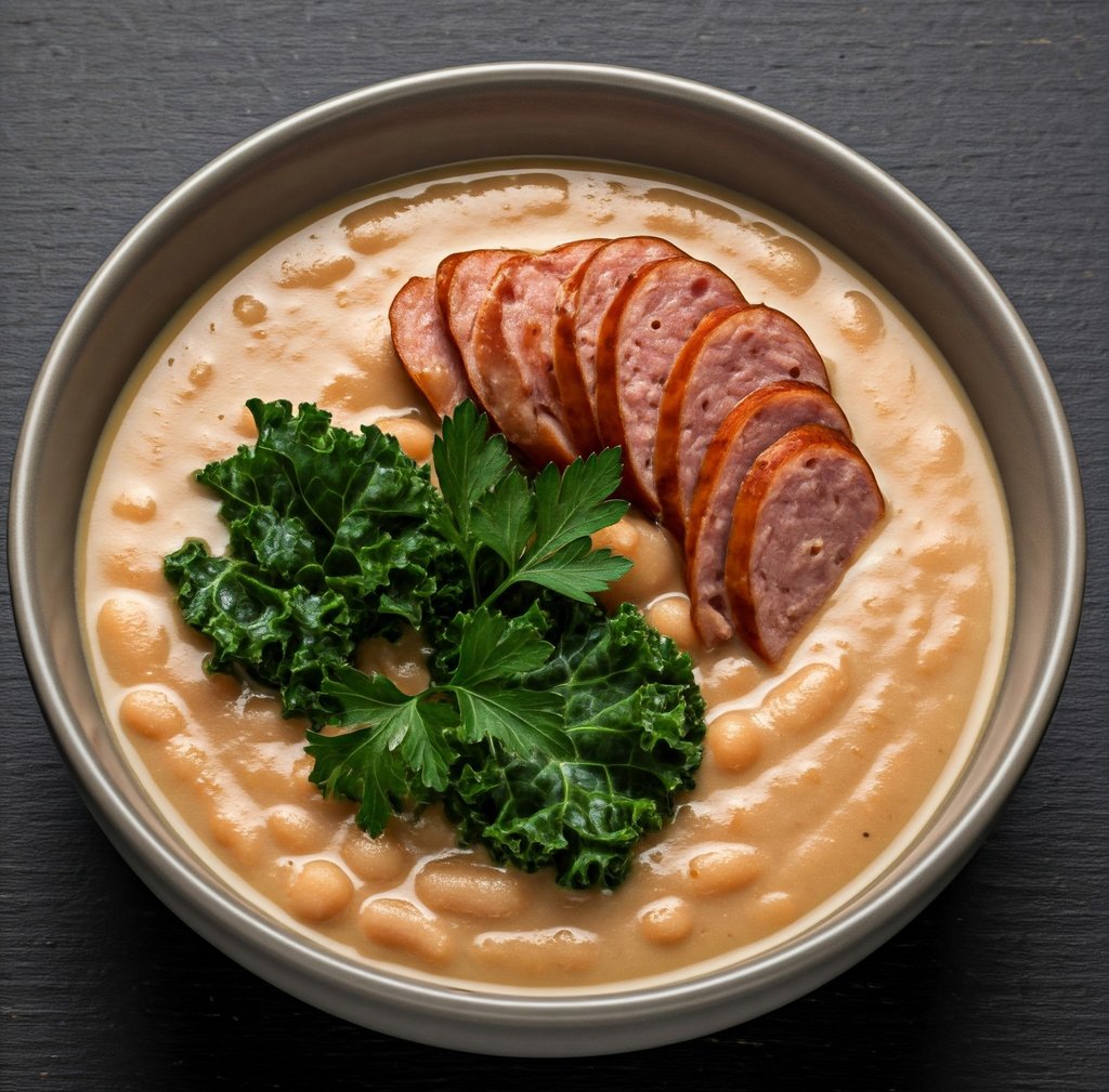 Sopa de Feijão Branco com Couve e Linguiça de Frango