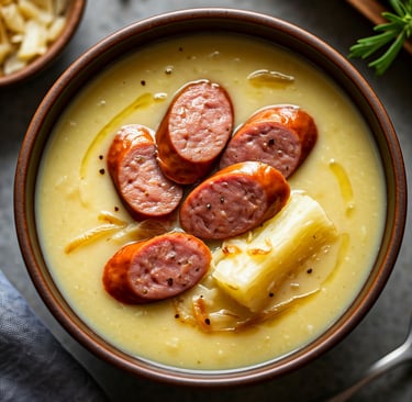 Sopa de Mandioca com Linguiça Toscana: