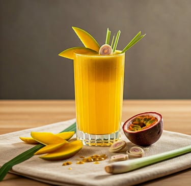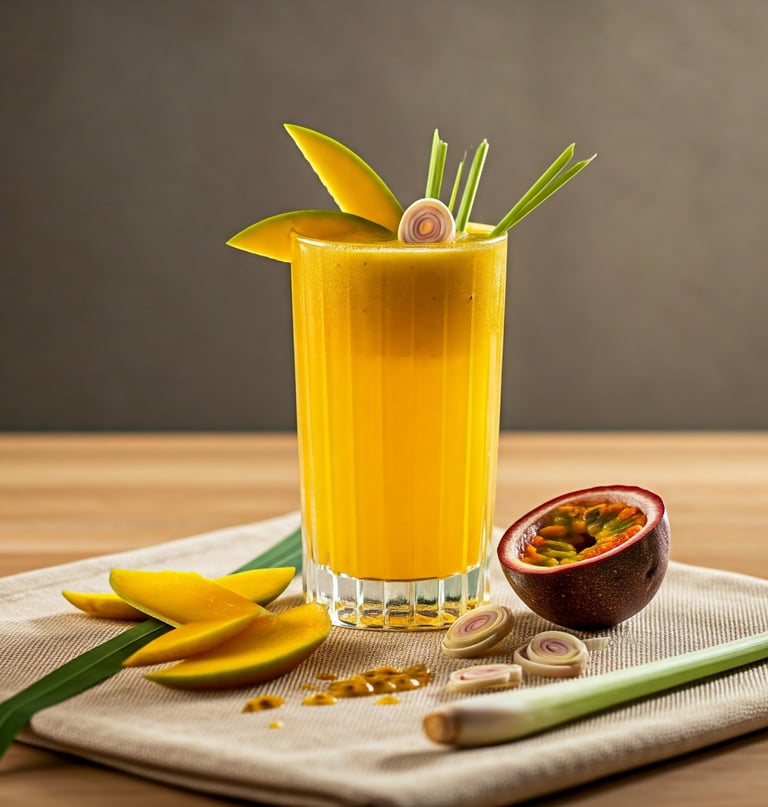 Guarnições Criativas: Decore com uma fatia de manga, uma flor de maracujá ou um ramo de hortelã fresca.