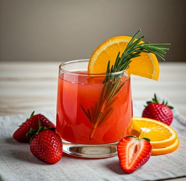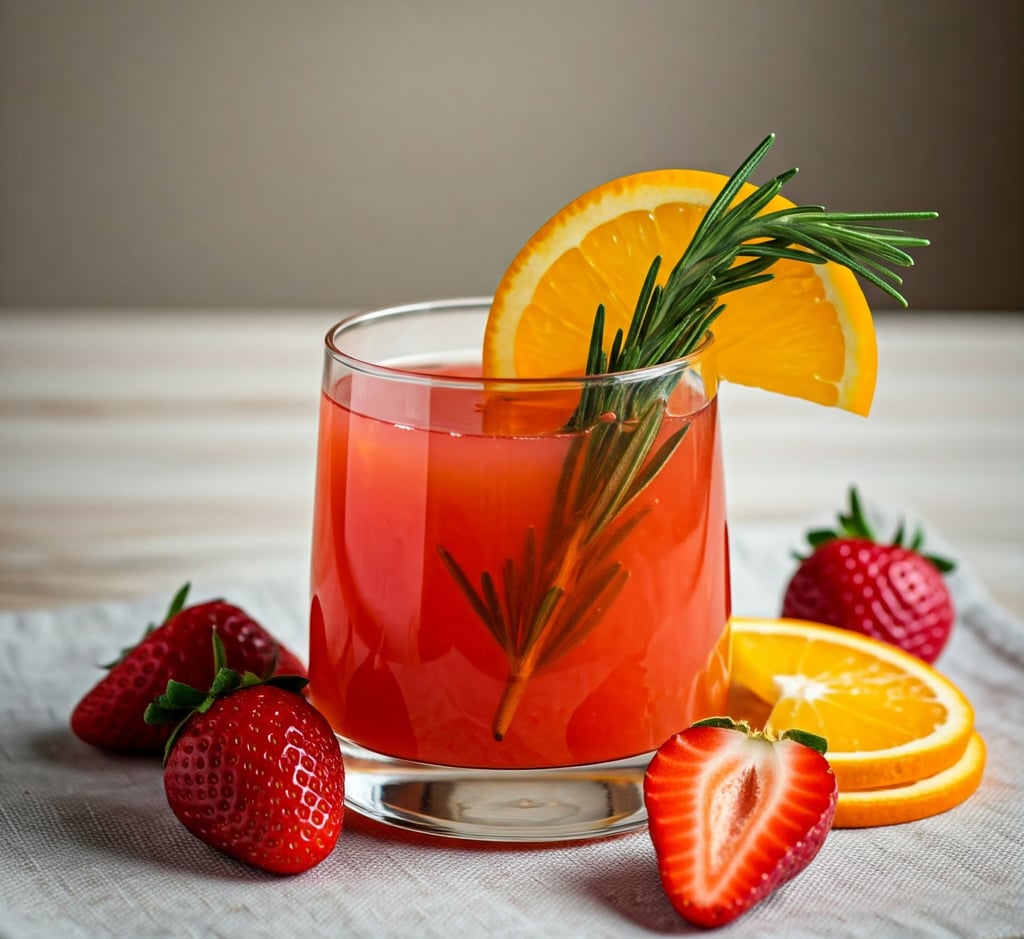 Bata os morangos com o suco de laranja e o alecrim no liquidificador.