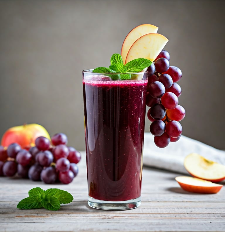 Guarnições: Adicione algumas uvas inteiras ou pedaços de maçã no copo para um toque visual e crocante.