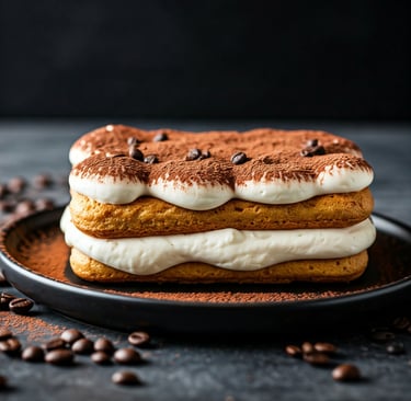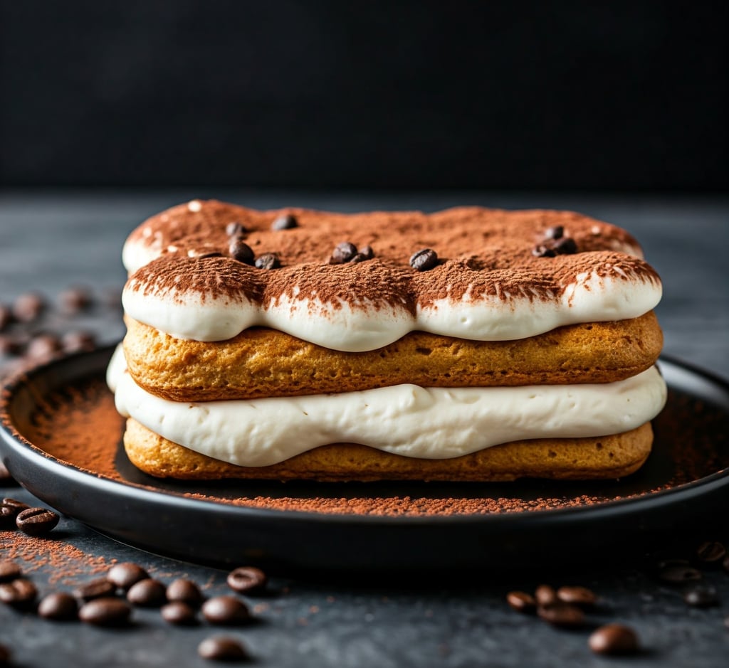 Uma versão leve do clássico tiramisu, sem laticínios, com café e cacau.